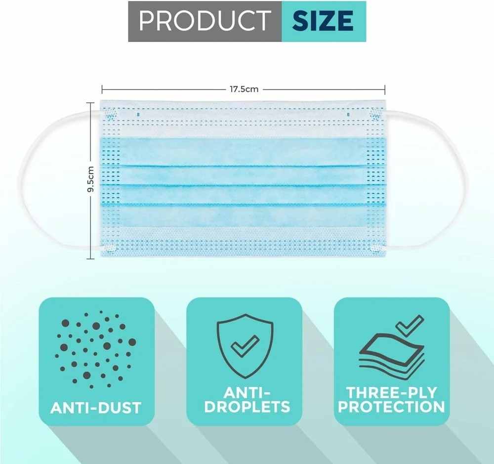 - Pack of 50 disposable surgical face masks for added convenience