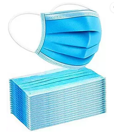 - Pack of 50 disposable surgical face masks .